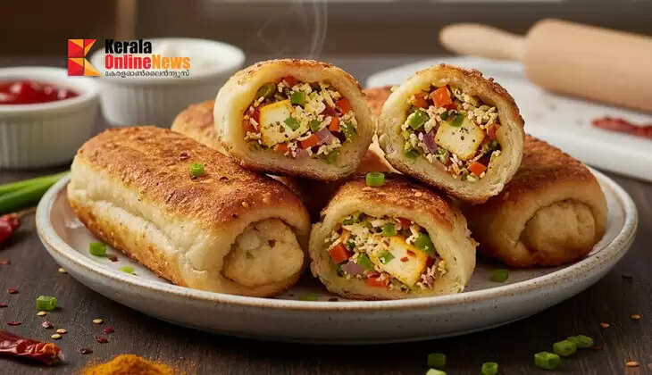 ശേഷം ബ്രെഡ് എടുത്ത് അരിക് ഭാഗം മുറിച്ച് മാറ്റാം. ചപ്പാത്തി റോൾ കൊണ്ട് ബ്രെഡ് പരത്തിയെടുക്കാം. ബ്രെഡിന് മുകളിൽ ടൊമാറ്റോ സോസ് പുരട്ടി അതിലേക്ക് പനീറിന്റെ കൂട്ട് വച്ച് ചുരുട്ടി എടുക്കാം. പാൻ വച്ച് ബട്ടർ ചേർത്ത് ഒാരോ ബ്രെഡ് റോളും തിരിച്ചും മറിച്ചുമിട്ട് മൊരിച്ചെടുക്കാം. നല്ല ടേസ്റ്റി പനീർ ബ്രെഡ് റോൾ റെഡി.